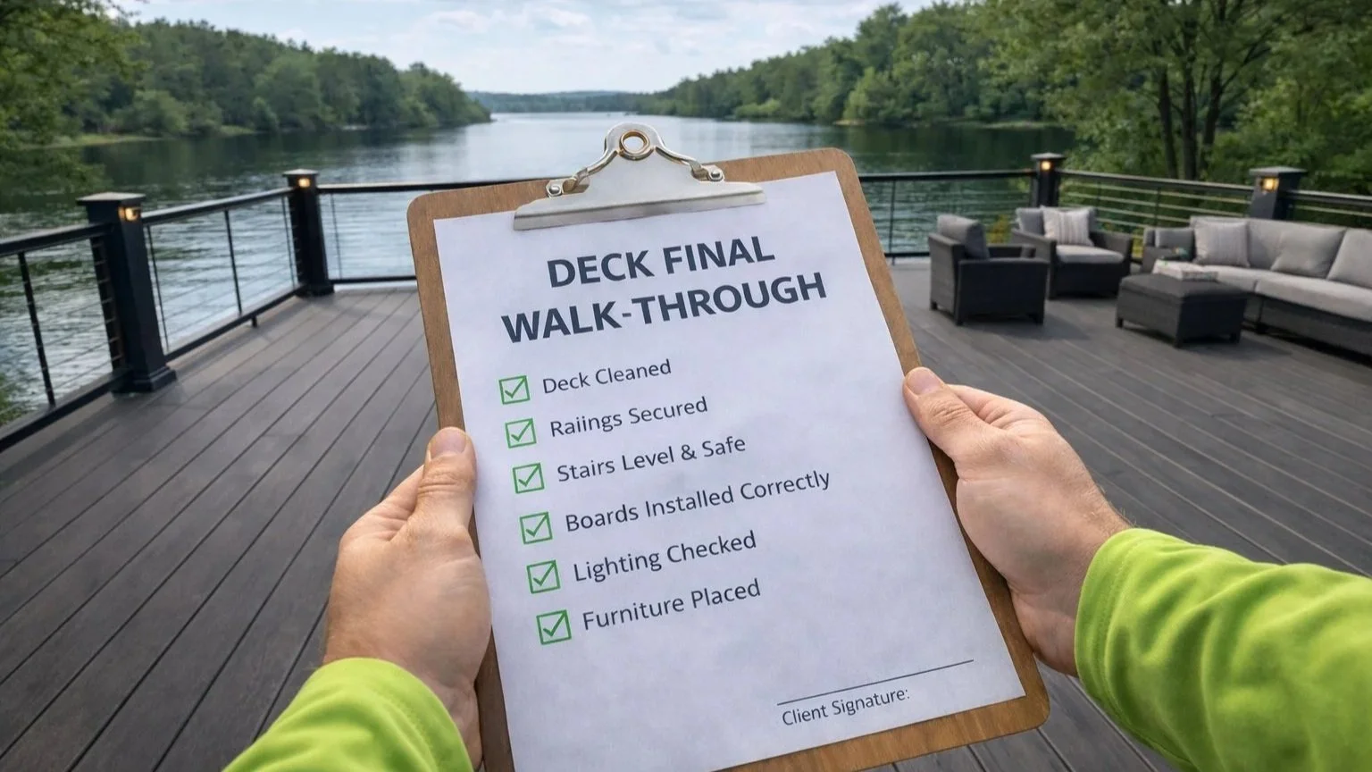 Once the required deposit is received and deck construction contract is signed, your deck project will be placed on our construction schedule. Our team at Creative Landscape by Design will coordinate timelines, finalize material selections, address permitting if required, and ensure all site preparation details are handled prior to installation.